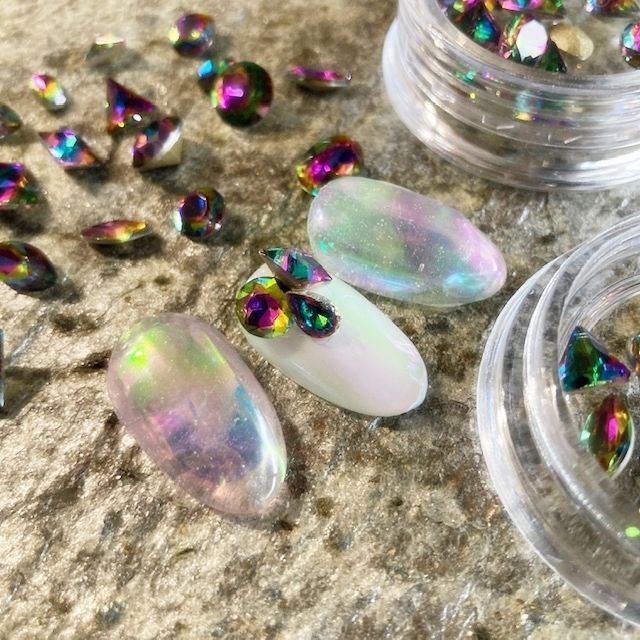 Vカットストーンなので色んなストーンやパーツと組合わせてネイルアートをお楽しみいただけます。