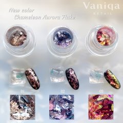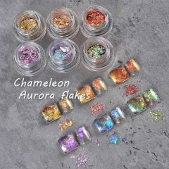 角度により色の変化が楽しめるカメレオン効果のフレークです。