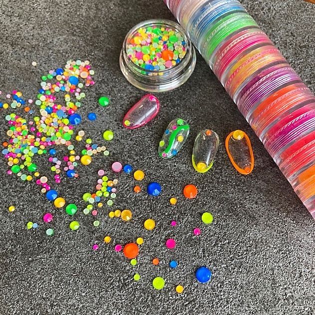 また蛍光色以外のカラーやマットネイルのワンポイントにもかわいいストーンです